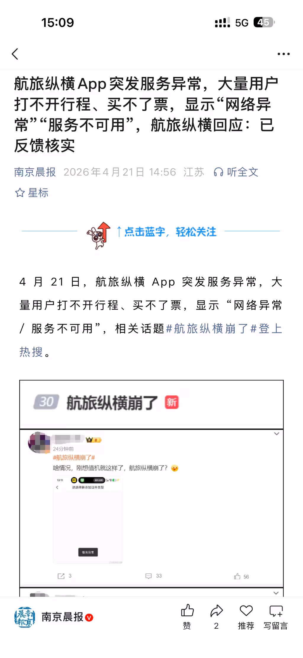 航旅纵横 APP 崩溃,居然刚好被我遇到