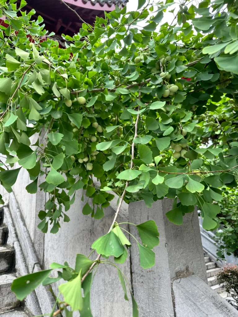 果然只有在寺庙里的花和果没人敢擅摘,这银杏即使挂在台阶栏杆边,依旧完好。若要是在我们小区,嘿嘿…